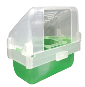 Comedero Marta para exterior de jaulas con el cajón extraíble y peine separador en el interior.