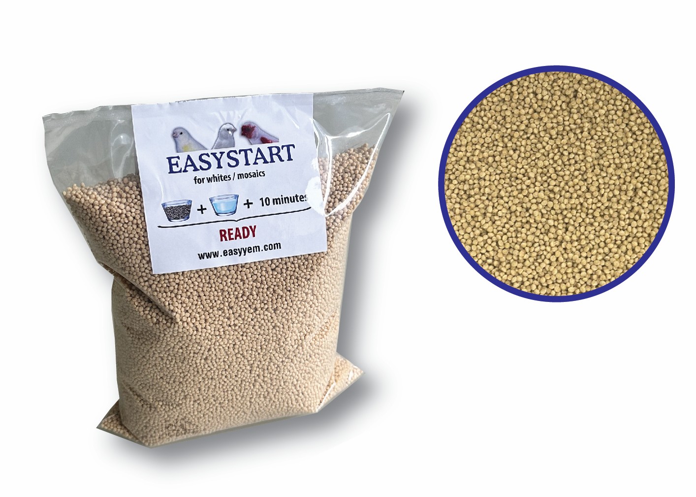 Easystart Mosaic es un producto innovador de Easyyem que sustituye por completo las semillas germinadas y evita los hongos en los polluelos.